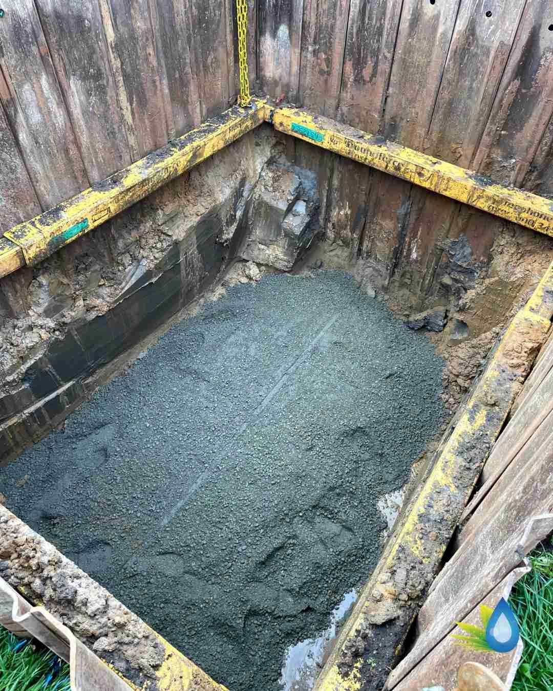- Excavation & Shoring – Running sand required specialist shoring to stabilise the excavation for the new tank.