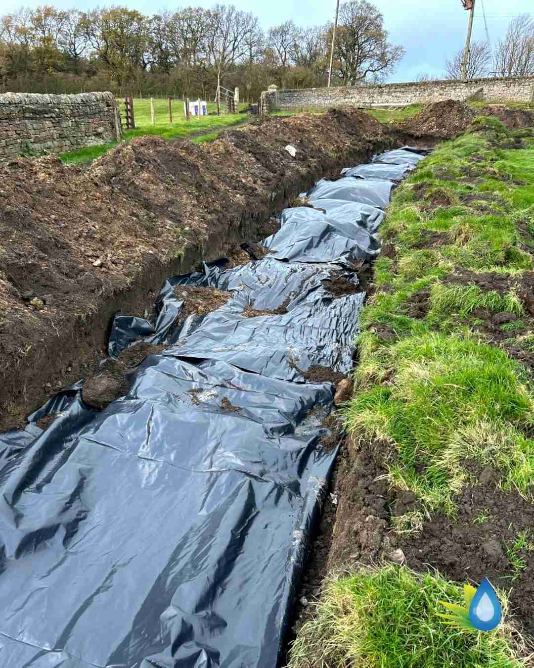 The new drainage system included approximately 10 metres of 110mm inlet drainage and a 99-metre drainage field, constructed using slotted pipe bedded in clean washed gravel, overlaid with a permeable membrane and finished with excavated soil in a 900mm-wide trench. This design ensures efficient wastewater dispersal and prevents groundwater contamination.