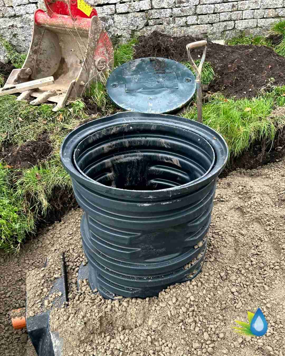 Once the site was prepared, we supplied and installed a Klargester Twin Stage 3,500 litre Gamma Septic Tank within a full concrete surround, providing long-term durability and compliance with regulations. To facilitate future maintenance, we installed shallow inlet and outlet inspection chambers.