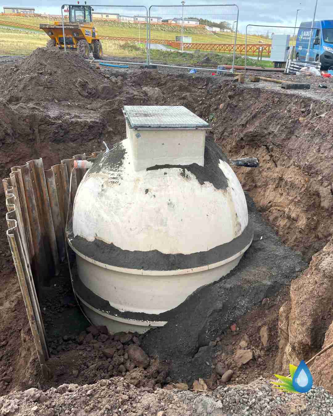 - Klargester PU2645TG Pump Station – Installed within a reinforced concrete encasement to guarantee durability and performance.
