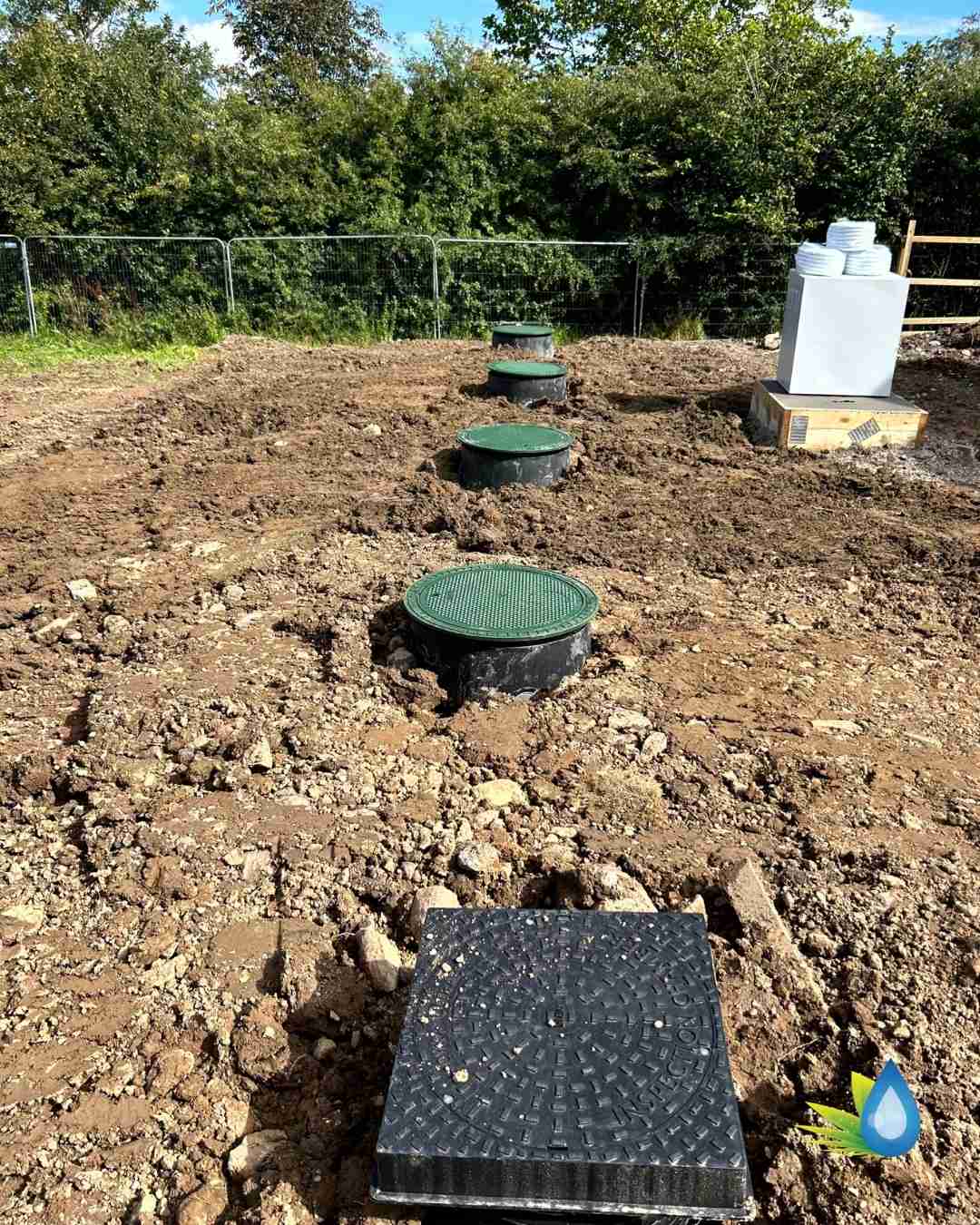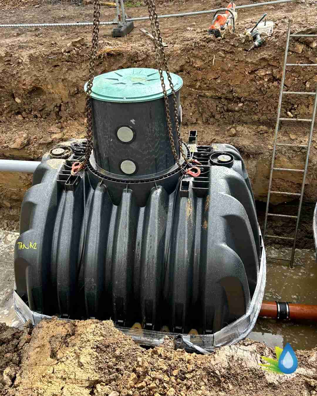 The Klaro E Professional 50 system comprises four interconnected 6,500-litre tanks, installed within a reinforced concrete encasement in accordance with manufacturer specifications. The scope of works included: